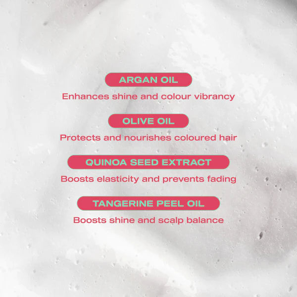 - Argan Oil and Olive Oil infuse rich moisture, restore softness, and shield colour-treated hair from dryness and environmental stress.