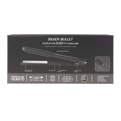 Take performance to the next level with Silver Bullet Keratin 230 Titanium Hair Straightener. If you struggle with straightening and find your average flat iron isn’t up to the task, struggle no more. Keratin 230 Titanium Straightener will tame unruly, thick or coarse hair. Providing heat up to 230°C, this straightener is an absolute prerequisite for styling even the most unmanageable hair