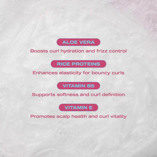 - Rice Proteins boost strength and elasticity, enhancing curl definition and bounce.