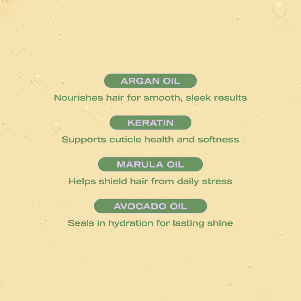 • Argan Oil: Hydrates, nourishes, and adds luminous shine while taming frizz.